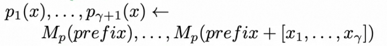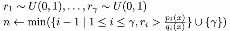 注意:公式里$x$的下标到$γ$,这样顺便计算出$γ+1$位置Token的概率分布$p_{γ+1}$。