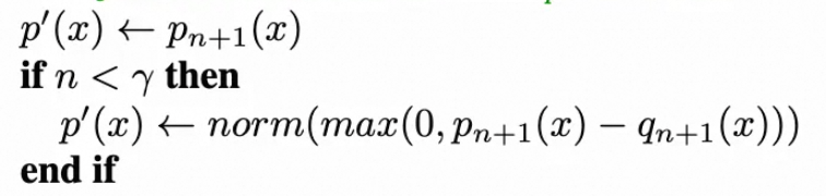 情况2: 第$n+1$个预测的Token被拒绝,使用修正概率分布$norm(max(0, p_{n+1}(x)−q_{n+1}(x)))$重新采样,修正是为了服从目标模型的概率分布$p$