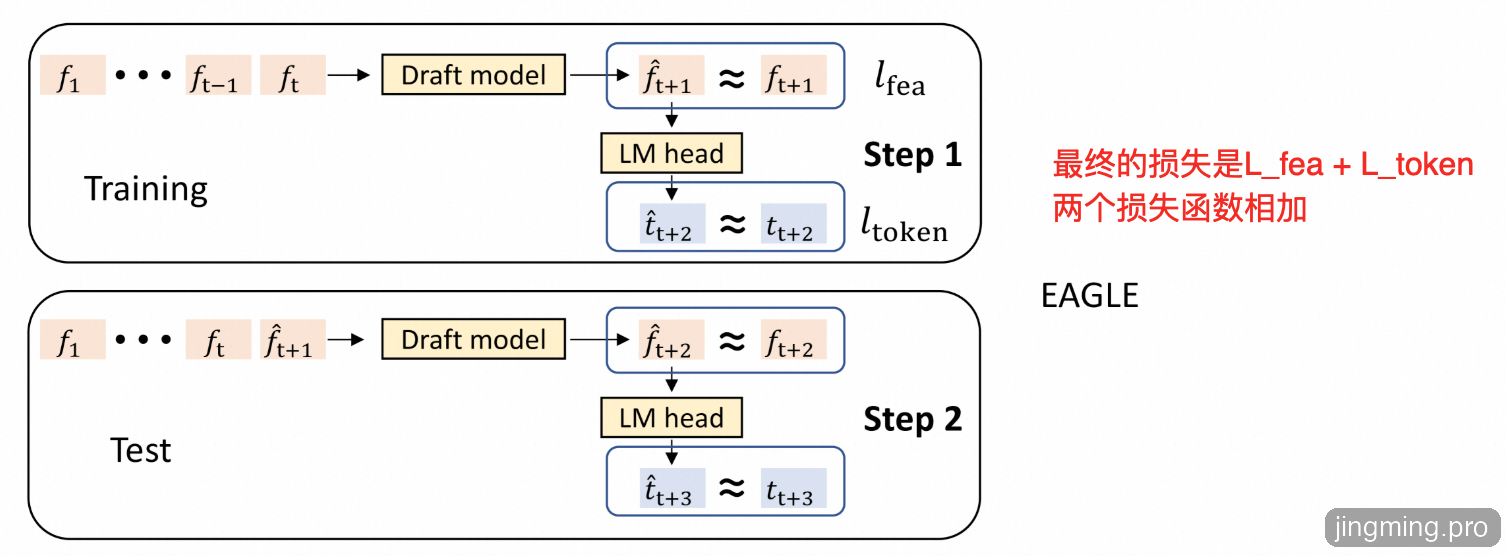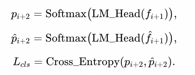 特征预测只是草稿模型的一个中间目标,最终目标是预测 token,从而生成 token 序列。还引入了分类损失,以便直接向这一最终目标进行优化。